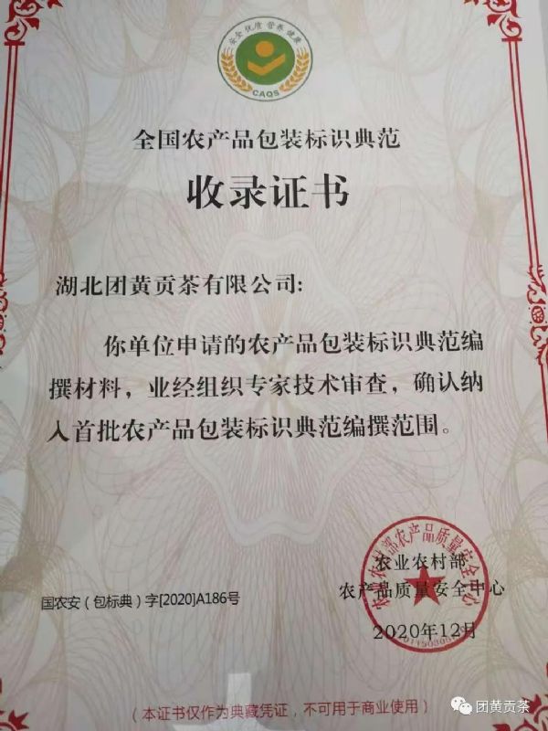 為響應(yīng)號召,湖北團(tuán)黃貢茶有限公司積極參與農(nóng)業(yè)農(nóng)村部農(nóng)業(yè)農(nóng)村部農(nóng)產(chǎn)品質(zhì)量安全中心組織的首期全國生態(tài)環(huán)保優(yōu)質(zhì)農(nóng)產(chǎn)品包裝標(biāo)識與品牌發(fā)展專題培訓(xùn)班!團(tuán)黃牌英山云霧茶”包裝榮獲全國首批農(nóng)產(chǎn)品包裝標(biāo)識百家典范稱號。