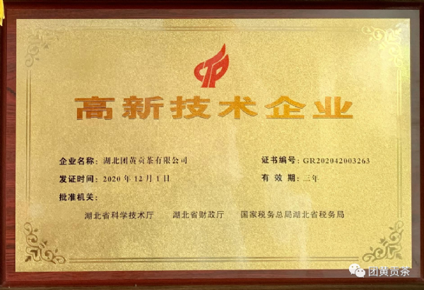 【團黃資訊】團黃貢茶評定為“高新技術(shù)企業(yè)”